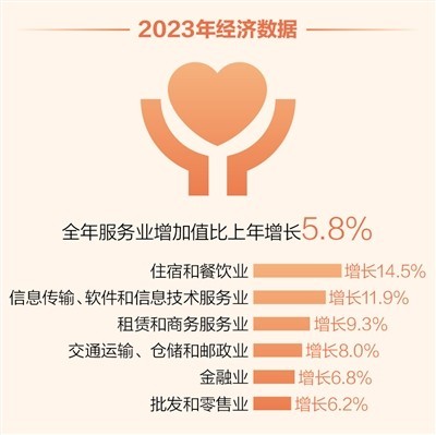 高質(zhì)量發(fā)展“活力足”。2023年服務(wù)業(yè)增加值占國內(nèi)生產(chǎn)總值比重為54.6%,對經(jīng)濟增長的貢獻率超過60%,經(jīng)濟結(jié)構(gòu)不斷優(yōu)化。制造業(yè)技改投資增長3.8%,高技術(shù)產(chǎn)業(yè)投資增長10.3%,動能轉(zhuǎn)換提檔升級。我國正在持續(xù)推動形成創(chuàng)新驅(qū)動發(fā)展的新局面,中國經(jīng)濟在加快培育新質(zhì)生產(chǎn)力中不斷發(fā)展壯大。