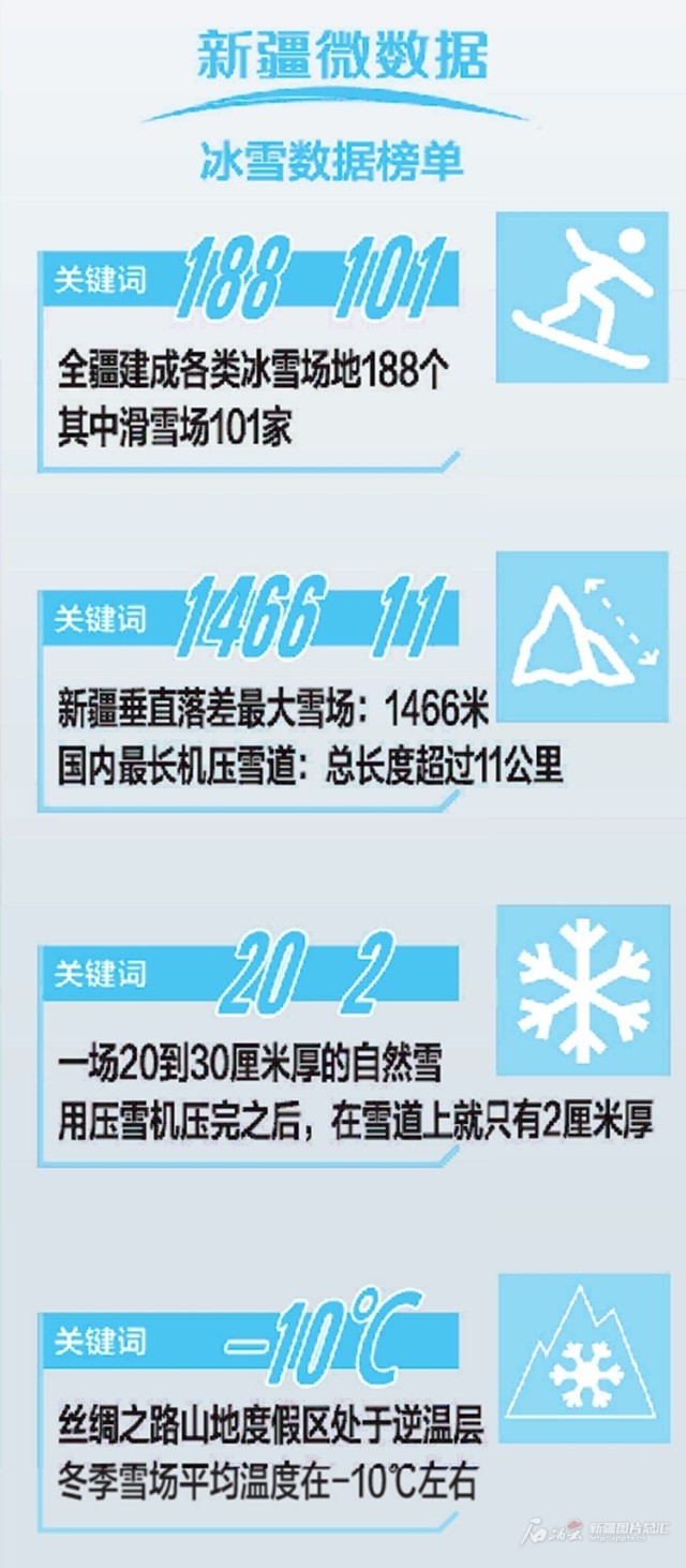 近年來,新疆冰雪旅游蓬勃發(fā)展,最新數(shù)據(jù)顯示,全疆建成各類冰雪場(chǎng)地188個(gè),其中滑雪場(chǎng)101家。位于冰雪黃金緯度帶,散落在天山、阿爾泰山的滑雪場(chǎng),有一份亮眼的成績(jī)單:雪季最長(zhǎng)、落差最大、雪道最多、景色最美……新疆極致冰雪體驗(yàn)背后那些不為人知的故事,記者來為你揭秘。