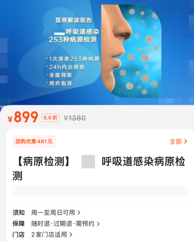 事實(shí)上,這并非種類最多的檢測(cè)方案。記者在調(diào)查中發(fā)現(xiàn),有機(jī)構(gòu)推出的呼吸道感染病原檢測(cè)一次篩查病原多達(dá)253種,原價(jià)1380元,折后也要899元。