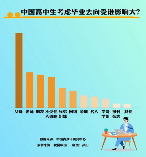 孫宏艷:首先,學(xué)校是職業(yè)生涯規(guī)劃教育的主要部門,學(xué)校把職業(yè)生涯規(guī)劃教育搞好了,學(xué)生能對自己和職業(yè)有準(zhǔn)確的認(rèn)知和定位,他們自然會選擇合適的職業(yè)和工作地。從這次的調(diào)查數(shù)據(jù)看,中國高中生已比過去更理性了,就業(yè)地首選已從北上廣這樣的國際大城市到所在地中心城市了。未來,隨著我國鄉(xiāng)村振興等政策的推進(jìn)和城市的發(fā)展,青年也許會更愿意到所在地縣鎮(zhèn)村等基層去工作。這不僅依賴于政策和城市的發(fā)展,更依賴于青年對自我和職業(yè)的準(zhǔn)確定位。