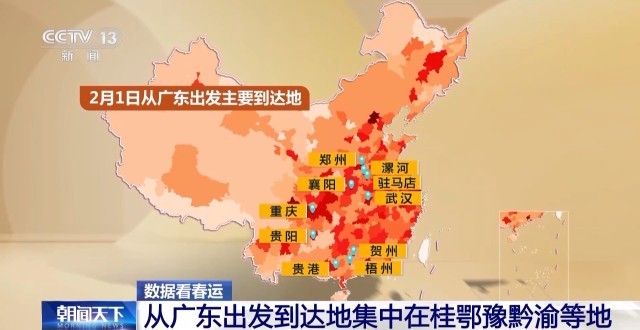進入春運以來,鐵路客流已連續(xù)六天超千萬人次。昨天(1月31日)選擇乘坐列車踏上旅程的旅客大約有1140萬人次。從12306今天預售票務數(shù)據(jù)看,北京、廣州、成都、上海、重慶、武漢、鄭州、杭州、西安、長沙這些一線城市和區(qū)域中心城市,依然是春運期間頗受歡迎的目的地。