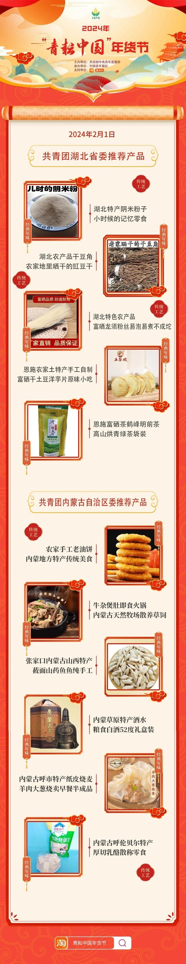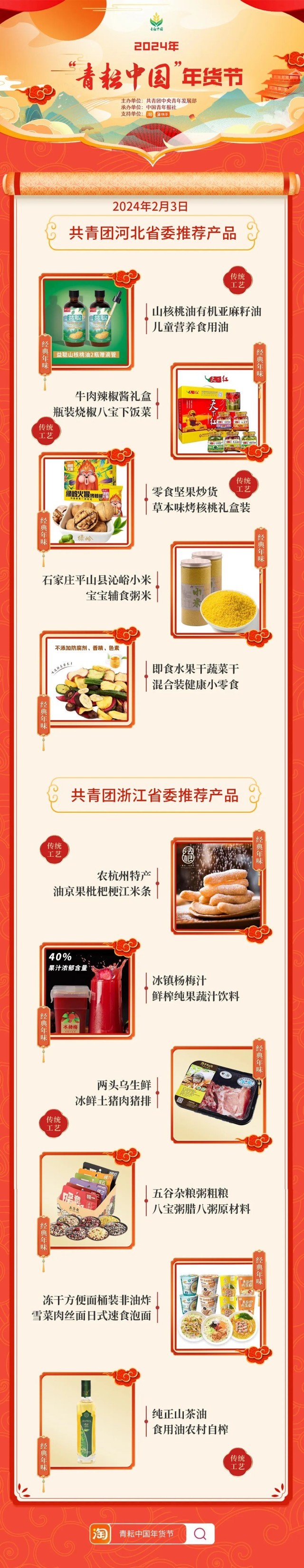 2024年“青耘中國(guó)”年貨節(jié)將于1月31日至2月24日,開展“一日兩省”主題日活動(dòng)。用戶可在淘寶APP搜索“青耘中國(guó)年貨節(jié)”進(jìn)入專題頁(yè)選購(gòu)產(chǎn)品。