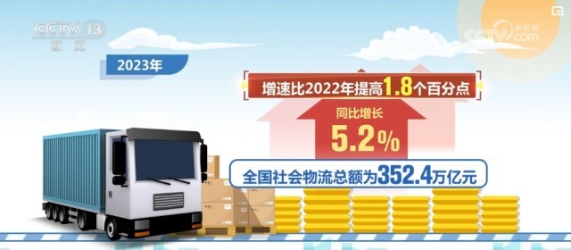 央視網(wǎng)消息:中國(guó)物流與采購(gòu)聯(lián)合會(huì)2月7日公布2023年物流運(yùn)行數(shù)據(jù)。2023年,我國(guó)經(jīng)濟(jì)在波動(dòng)中恢復(fù),穩(wěn)定因素不斷累積,物流運(yùn)行環(huán)境持續(xù)改善,行業(yè)恢復(fù)整體向好,市場(chǎng)需求規(guī)?;謴?fù)加快,全年社會(huì)物流總額超過(guò)352萬(wàn)億元。