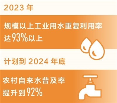 推進(jìn)農(nóng)村供水高質(zhì)量發(fā)展。農(nóng)村自來水普及率達(dá)到90%。計(jì)劃到今年底,農(nóng)村自來水普及率提升到92%,規(guī)模化供水工程覆蓋農(nóng)村人口比例提高到63%。