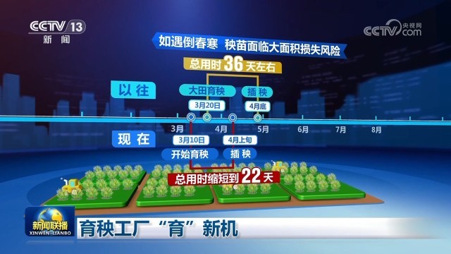 現(xiàn)在,工廠里育秧不再受外界氣溫影響,可以提前到3月10日開始育秧。通過智能化數(shù)字化控制,總用時(shí)也縮短到22天,插秧提早到4月上旬。