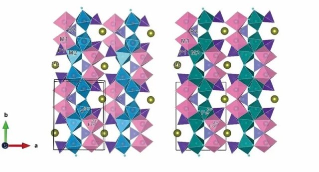 褐磷釩鐵鉛石(a)和綠磷鐵鉛石(b)的晶體結(jié)構(gòu)圖。西北大學(xué)供圖