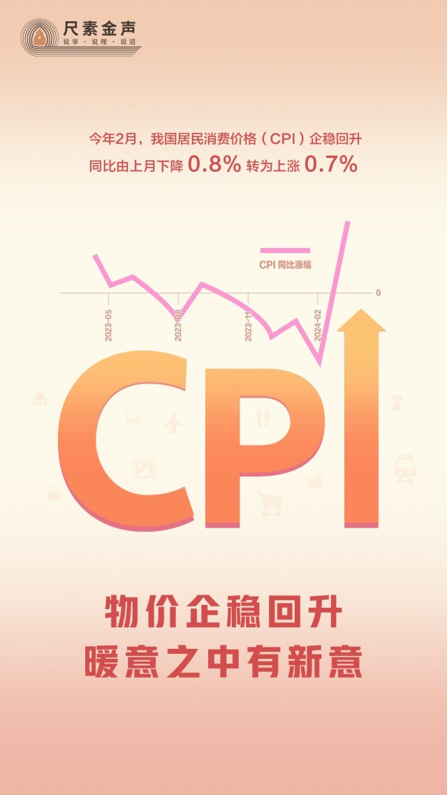 國家統(tǒng)計局發(fā)布的最新數(shù)據(jù)顯示,今年2月,我國居民消費價格(CPI)企穩(wěn)回升,同比由上月下降0.8%轉(zhuǎn)為上漲0.7%,其中扣除食品和能源價格的核心CPI漲幅為2022年2月以來最高。