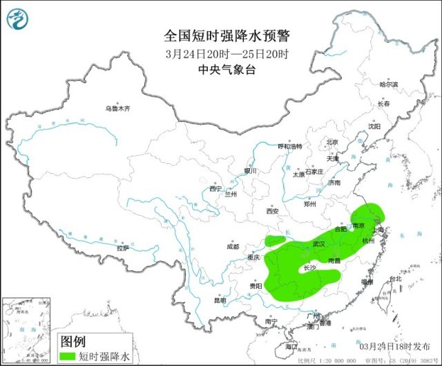 央視網(wǎng)消息:中央氣象臺(tái)3月24日18時(shí)繼續(xù)發(fā)布強(qiáng)對(duì)流天氣藍(lán)色預(yù)警。預(yù)計(jì)3月24日20時(shí)至25日20時(shí),安徽中南部、江蘇中南部、湖北東部和南部、重慶東部、貴州東部、湖南北部和東南部、江西東北部和中南部、浙江西北部、廣西東北部等地的部分地區(qū)將有8-10級(jí)雷暴大風(fēng)或冰雹天氣;安徽中南部、江蘇中南部、上海北部和西部、湖北東部和南部、重慶東部、貴州東部、湖南、江西、浙江西北部、廣西東北部、廣東西北部等地的部分地區(qū)將有短時(shí)強(qiáng)降水天氣,最大小時(shí)雨量20-40毫米,局地可達(dá)50毫米以上。