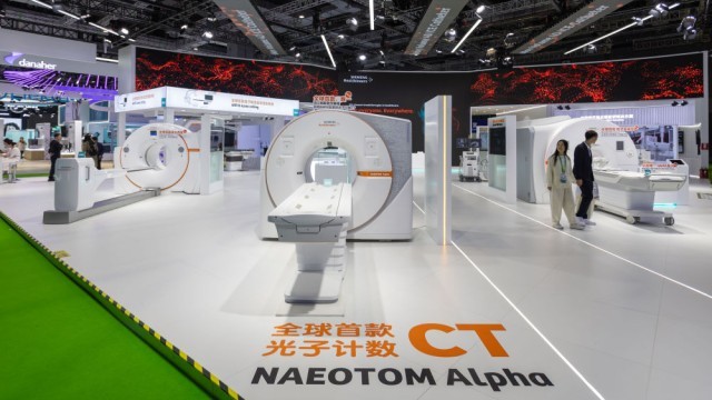 2023年11月8日在第六屆中國國際進(jìn)口博覽會醫(yī)療器械及醫(yī)藥保健展區(qū)拍攝的西門子展位。新華社記者 王翔 攝