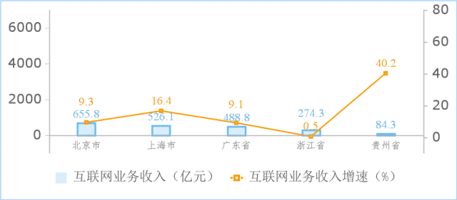 2024年1—2月份收入居前5名省市互聯(lián)網(wǎng)業(yè)務收入增長情況