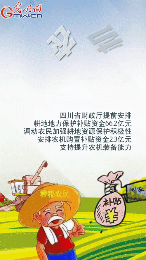 海南省財政廳安排糧食生產(chǎn)相關項目資金12.61億元,統(tǒng)籌土地出讓收入3.23億元用于高標準農(nóng)田建設;四川省財政廳提前安排耕地地力保護補貼資金66.2億元,調(diào)動農(nóng)民加強耕地資源保護積極性,安排農(nóng)機購置補貼資金2.3億元,支持提升農(nóng)機裝備能力。