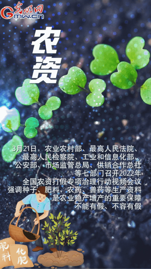 3月21日,農(nóng)業(yè)農(nóng)村部、最高人民法院、最高人民檢察院、工業(yè)和信息化部、公安部、市場監(jiān)管總局、供銷合作總社等七部門在京聯(lián)合召開2022年全國農(nóng)資打假專項治理行動視頻會議。會議強調(diào),種子、肥料、農(nóng)藥、獸藥等生產(chǎn)資料是農(nóng)業(yè)穩(wěn)產(chǎn)增產(chǎn)的重要保障,必須保證質(zhì)量,不能有假、不容有假。