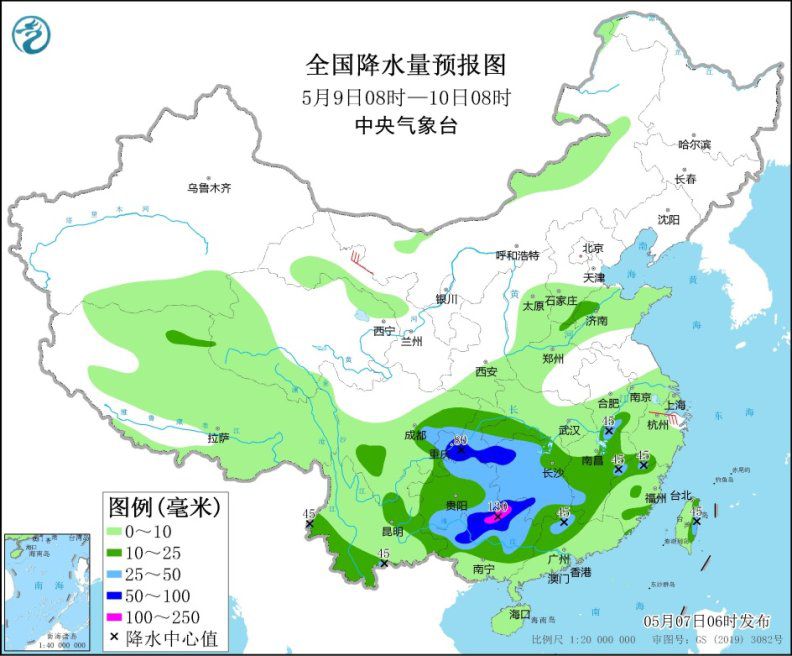 圖2 全國降水量預報圖(5月8日08時-9日08時)
