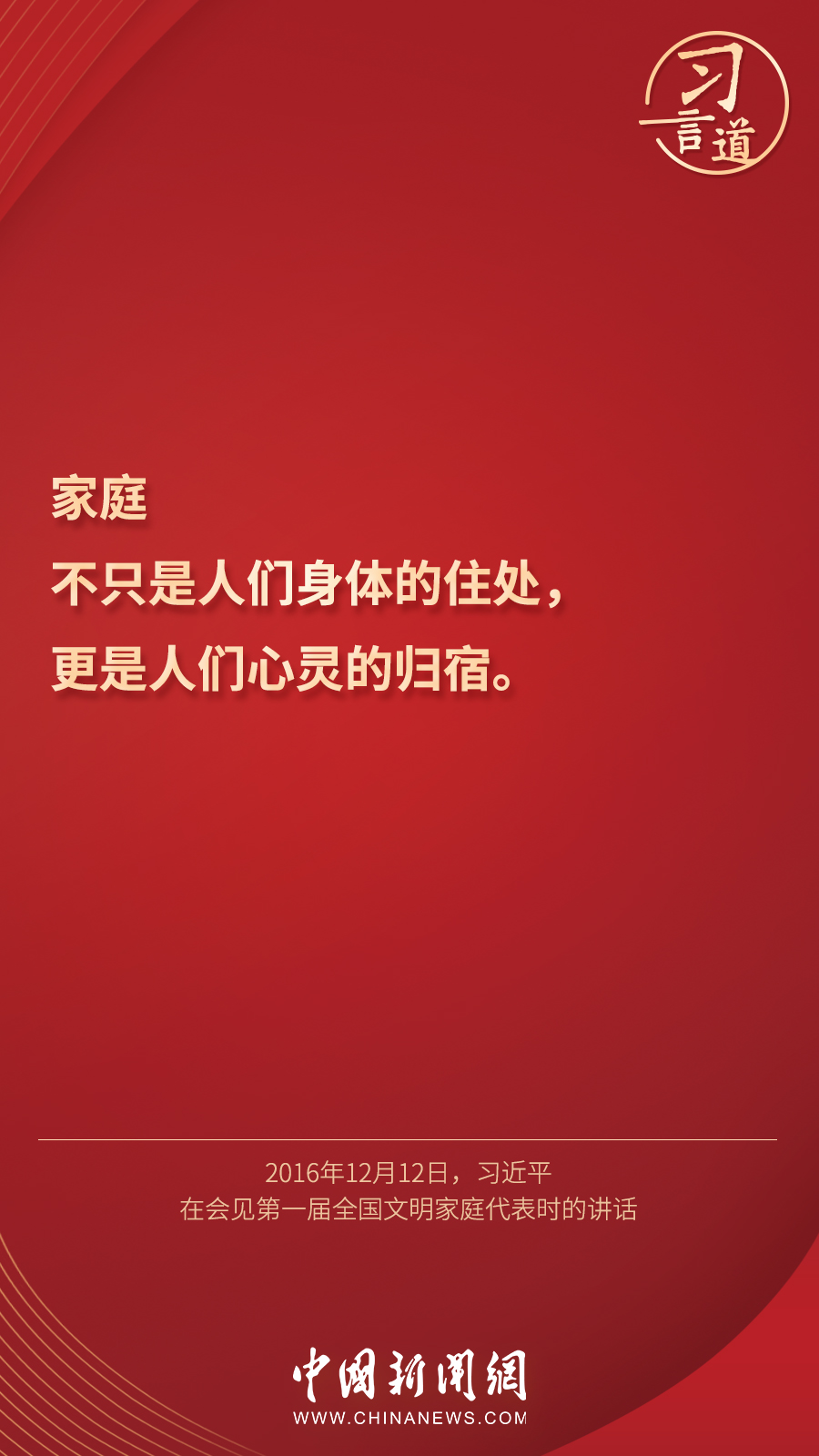 “家庭不只是人們身體的住處,更是人們心靈的歸宿?!苯陙?,習近平總書記發(fā)表過諸多關于重視親情、營造良好家風的重要論述,他指出——
