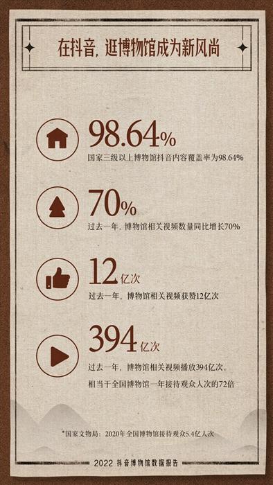 報告顯示:全國三級以上博物館抖音內(nèi)容覆蓋率達(dá)98.64%