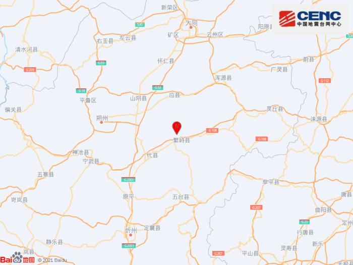山西忻州市繁峙縣發(fā)生3.2級(jí)地震 震源深度10千米