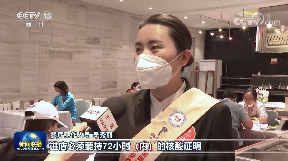 餐廳工作人員 吳秀麗:進(jìn)店必須要持72小時(shí)(內(nèi))的核酸證明,隔餐(桌)坐,不是桌桌都可以坐。