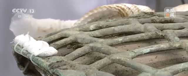 在這件被網(wǎng)友稱為月光寶盒的青銅器網(wǎng)格上,甚至在這件網(wǎng)格狀青銅器籠罩的玉石上面,考古工作者都發(fā)現(xiàn)了大量的絲織物殘留。這為解讀古蜀文明提供了非常有價值的信息。
