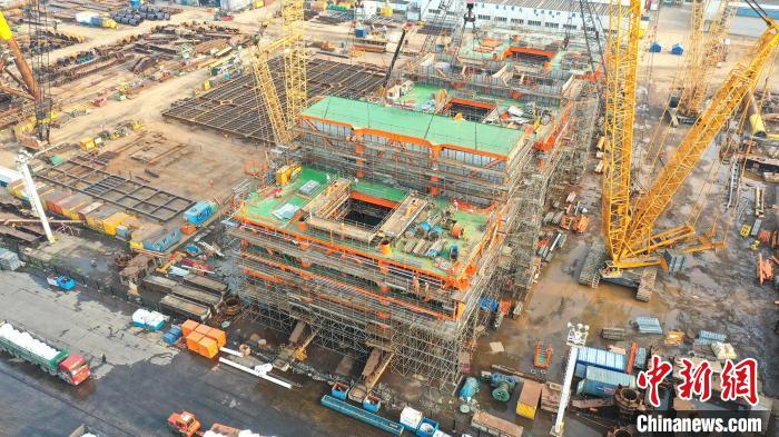 據(jù)悉,該項(xiàng)目采用一體化建造技術(shù),大幅提高甲板片預(yù)制和總裝效率,比傳統(tǒng)建造方式提前20天實(shí)現(xiàn)封頂,為后續(xù)海上安裝工作爭(zhēng)取了寶貴的時(shí)間窗口。施工期間,項(xiàng)目團(tuán)隊(duì)牢牢把握各關(guān)鍵節(jié)點(diǎn),統(tǒng)籌調(diào)配場(chǎng)地資源,全力保障項(xiàng)目按期投產(chǎn)。