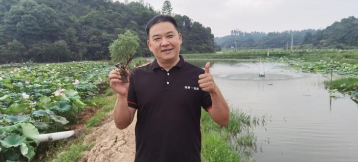 隨著鄉(xiāng)村振興全面推進,鄧述東又開始打造“一畝田脫貧”模式升級版——“深耕一畝田”。2021年年初,鄧述東團隊與企業(yè)合作,在湘潭縣梅林橋現(xiàn)代農(nóng)業(yè)示范園流轉(zhuǎn)耕地1100余畝(包含部分魚塘、荷塘),引進廣東一家澳洲青蝦繁育企業(yè),采取“蓮+蝦”“稻+蝦”、水塘“魚+蝦”等模式進行試驗養(yǎng)殖,蝦苗成活率接近100%,成長速度達到預(yù)期目標(biāo)。