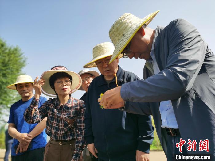 圖為青海省政協(xié)主席公保扎西(中)調(diào)研油菜種植?!?zhí)砀?攝