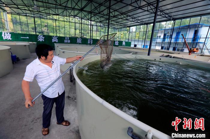 在四川省內(nèi)江市資中縣銀山鎮(zhèn)金紫鋪村,300余畝的高位池養(yǎng)魚基地內(nèi)波光粼粼、魚躍水面。一口口標準化高位池約3-5米深,采用科學技術(shù)養(yǎng)殖技術(shù),一口高位池的畝產(chǎn)量可達到傳統(tǒng)魚塘的十幾倍。投苗、飼喂魚料、打掃衛(wèi)生……成了基地內(nèi)工作人員的“必修課”。