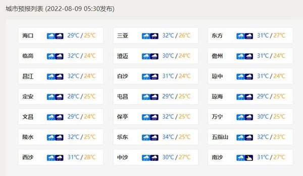 海南各城市預(yù)報(bào)。(來(lái)源:中國(guó)天氣網(wǎng))