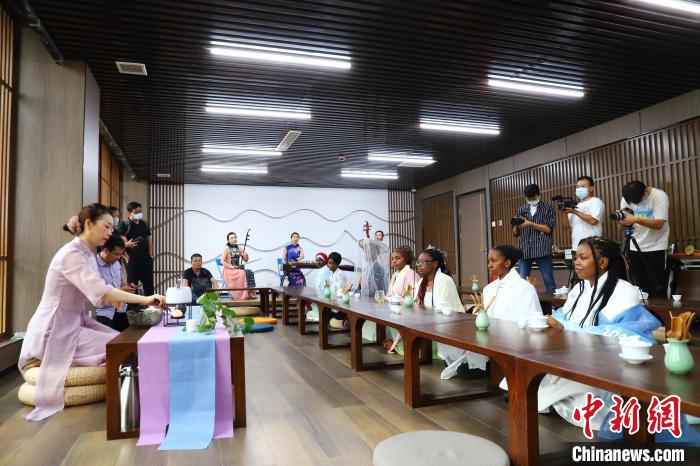留學(xué)生還更換漢服、唐裝,跟隨老師學(xué)習(xí)茶藝,并品嘗了自己親手泡制的泰山女兒茶。在品茶之余,大家又一起體驗了中國古典樂器之美,一曲享譽海內(nèi)外的中國民歌《茉莉花》,讓在場的留學(xué)生一起跟著哼唱,體悟中國傳統(tǒng)文化的魅力。