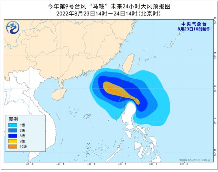 23日14時到24日14時,南海東北部海域、南海中部偏東海域、巴士海峽將有7-8級大風,“馬鞍”中心經(jīng)過的附近海域或地區(qū)的風力可達9-10級,陣風11-12級。