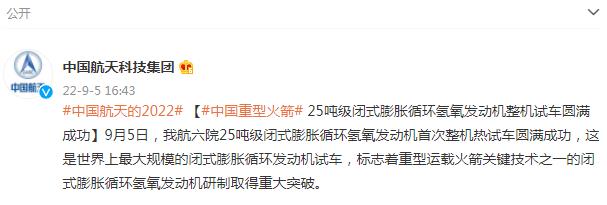 中新網(wǎng)9月6日電 據(jù)中國(guó)航天科技集團(tuán)有限公司官方微博5日消息,9月5日,中國(guó)航天科技集團(tuán)六院25噸級(jí)閉式膨脹循環(huán)氫氧發(fā)動(dòng)機(jī)首次整機(jī)熱試車圓滿成功,這是世界上最大規(guī)模的閉式膨脹循環(huán)發(fā)動(dòng)機(jī)試車,標(biāo)志著重型運(yùn)載火箭關(guān)鍵技術(shù)之一的閉式膨脹循環(huán)氫氧發(fā)動(dòng)機(jī)研制取得重大突破。
