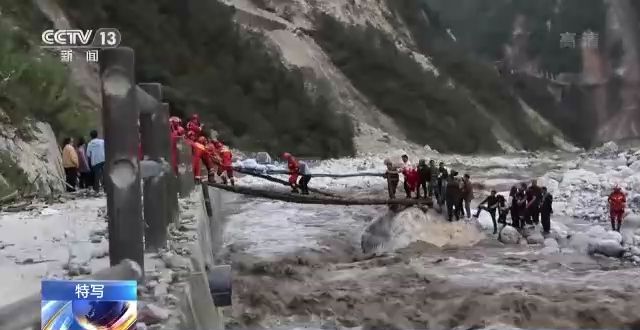 地震發(fā)生后,磨西鎮(zhèn)周邊有多個(gè)村子的人員受傷,5日下午,通往外界的唯一道路被滑坡和塌方阻斷,黨員突擊隊(duì)率先通過兩根供水管道和三根凌空的鋼索進(jìn)入村子。