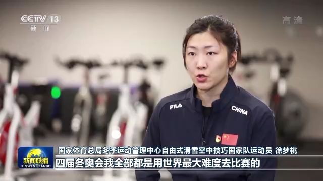 國家體育總局冬季運動管理中心自由式滑雪空中技巧國家隊運動員 徐夢桃:之前三屆(參加冬奧會)全都有傷,沒有因為自己的腿傷而跳簡單動作。我都是傷了,好,使勁拼!使勁拼!四屆冬奧會我全部都是用世界最大難度去比賽的。