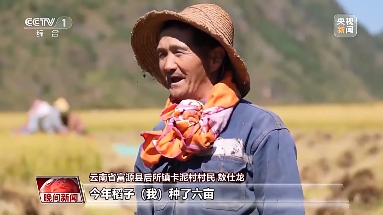 云南省富源縣后所鎮(zhèn)卡泥村村民 敖仕龍:今年稻子種了六畝,一畝收得到二十口袋,這個稻子比去年飽滿,比去年稱得出來(重),價(jià)格也比去往年好點(diǎn)。