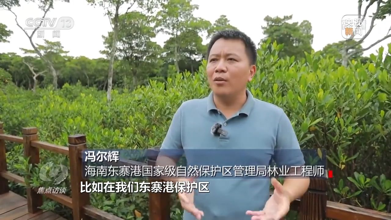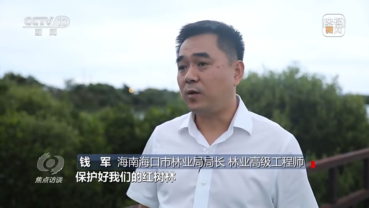 海南??谑辛謽I(yè)局局長、林業(yè)高級工程師 錢軍:在東寨港區(qū)域,我們修復(fù)了4783畝的紅樹林。通過對一系列生態(tài)修復(fù),保護(hù)好紅樹林,也讓子孫后代享受保護(hù)紅樹林帶來的紅利。