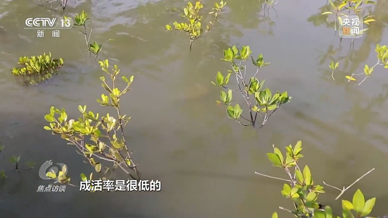 海南東寨港國家級自然保護(hù)區(qū)管理局林業(yè)工程師 馮爾輝:紅樹林胚軸要在母樹上發(fā)育成一個個體,然后再掉下來,掉到海水里面隨波逐流,成活率是很低的。