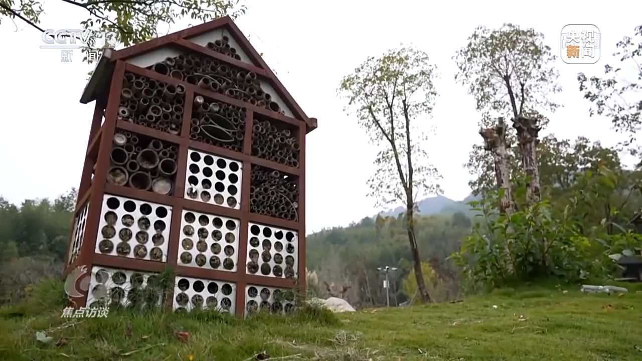 在重慶梁平區(qū)獵神村小微濕地旁的“昆蟲旅館”,一些由廢棄的竹木、瓦片等搭建起來的昆蟲旅館,成了很多昆蟲的家。那么,獵神村的昆蟲旅館是怎么來的呢?這還要從獵神村的過去說起。