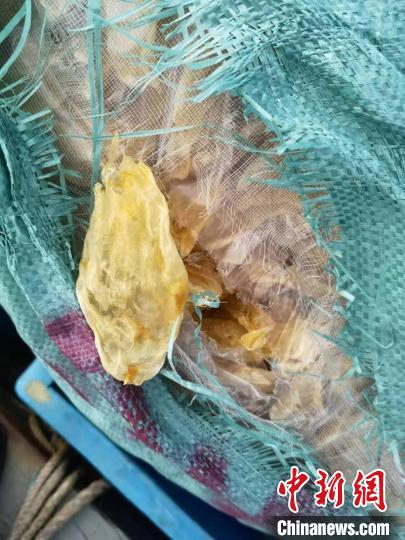 經(jīng)檢查,該船有涉案人員10名,船上裝載貨物為刺龜魚皮、魚膠、蛇干等干貨動物制品。通過初步詢問,10名涉案人員均不能提供該船合法證件及所載貨物的相關(guān)合法來源證明、檢驗檢疫證明,執(zhí)法人員依法對該船舶和物品進行查扣。