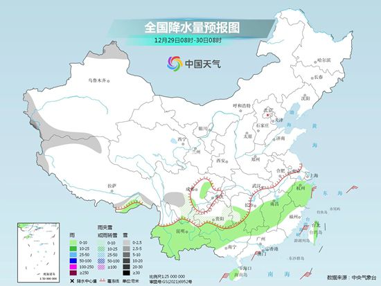 中國(guó)天氣網(wǎng)訊 在冷空氣與西南暖濕氣流配合之下,今天(12月28日),南方各地降水繼續(xù)發(fā)展。預(yù)計(jì),湖南、貴州、云南等地局地有中雪或大雪,降溫重心也集中到了長(zhǎng)江以南地區(qū),各地濕冷加重,上述地區(qū)公眾需做好防范雨雪和防寒保暖工作。