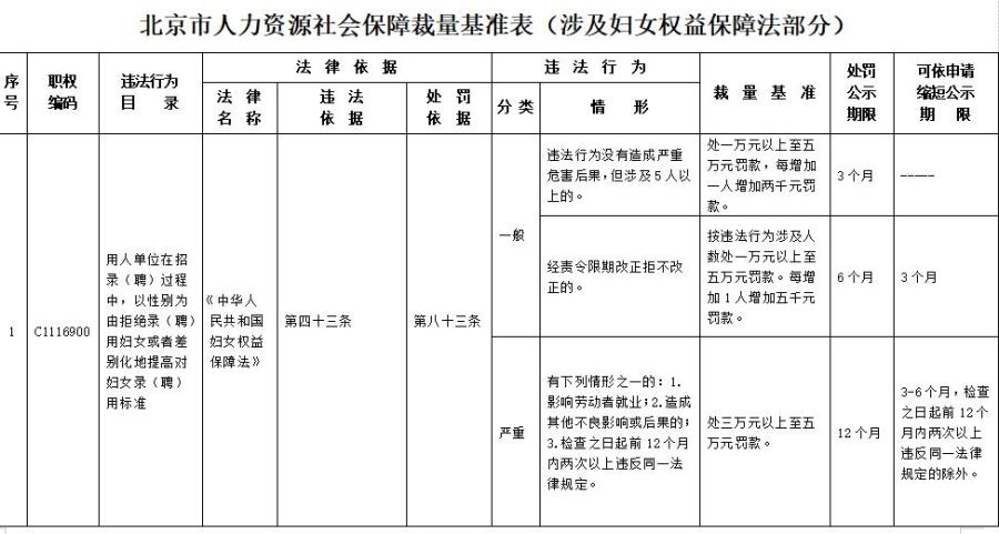 中新網(wǎng)2月3日電 北京市人力資源和社會(huì)保障局近日發(fā)布關(guān)于印發(fā)《北京市人力資源社會(huì)保障行政處罰裁量基準(zhǔn)表(涉及婦女權(quán)益保障法部分)》的通知,其中明確,用人單位在招錄(聘)過程中,以性別為由拒絕錄(聘)用婦女或者差別化地提高對(duì)婦女錄(聘)用標(biāo)準(zhǔn),或因結(jié)婚、懷孕、產(chǎn)假、哺乳等,降低女職工的工資和福利待遇等行為,最高可處五萬元罰款。(中新財(cái)經(jīng))