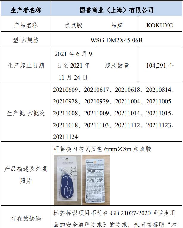 KOKUYO國譽(yù)文具召回10萬余個(gè)點(diǎn)點(diǎn)膠