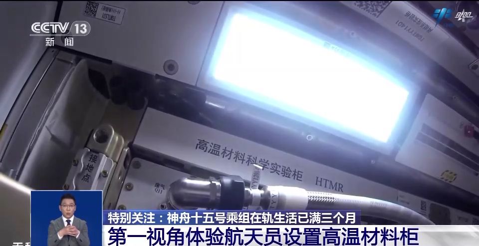 畫(huà)面中是航天員們正在設(shè)置高溫材料科學(xué)實(shí)驗(yàn)柜,這是支持在空間站微重力環(huán)境下進(jìn)行材料制備、加工、原位檢測(cè)、實(shí)時(shí)觀察和診斷于一體的新型實(shí)驗(yàn)裝置。最高加熱溫度能達(dá)到1600℃,溫度的穩(wěn)定度能達(dá)到±0.25℃,這個(gè)高溫材料科學(xué)實(shí)驗(yàn)柜的工作溫度、穩(wěn)定度和樣品數(shù)量、實(shí)時(shí)觀察成像技術(shù)均處于國(guó)際領(lǐng)先水平。