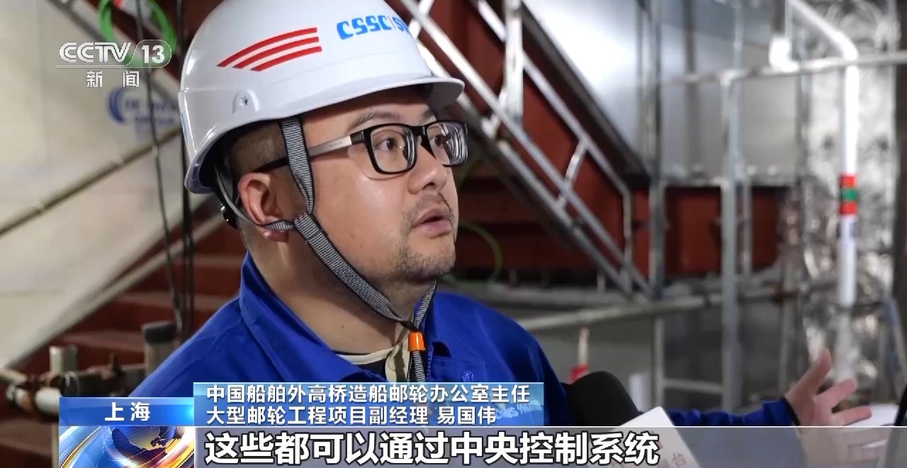 中國(guó)船舶外高橋造船郵輪辦公室主任 大型郵輪工程項(xiàng)目副經(jīng)理 易國(guó)偉:電纜要提供控制信號(hào),這條船它也是智能化的一條船舶,所有上面用的娛樂(lè)設(shè)施、照明設(shè)施,都可以通過(guò)中央控制系統(tǒng)來(lái)控制。