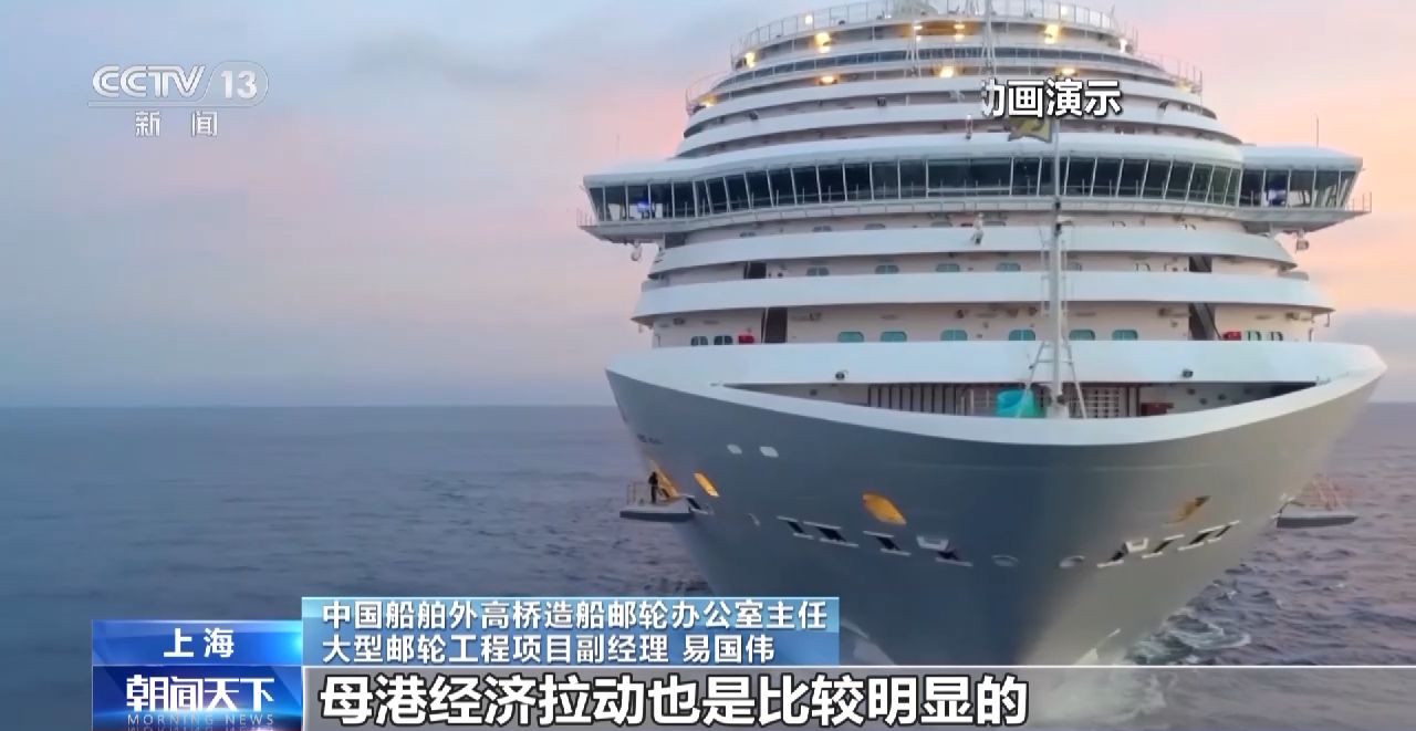 中國(guó)船舶外高橋造船郵輪辦公室主任 大型郵輪工程項(xiàng)目副經(jīng)理 易國(guó)偉:顧客在登船和下船以后,在當(dāng)?shù)匾矔?huì)進(jìn)行對(duì)應(yīng)的消費(fèi)和娛樂(lè),所以對(duì)當(dāng)?shù)馗劭诘哪父劢?jīng)濟(jì)拉動(dòng)也是比較明顯的。中國(guó)的郵輪產(chǎn)業(yè)如果按照正常的發(fā)展速度,預(yù)估在2035年可以達(dá)到一年5000億元的產(chǎn)值。