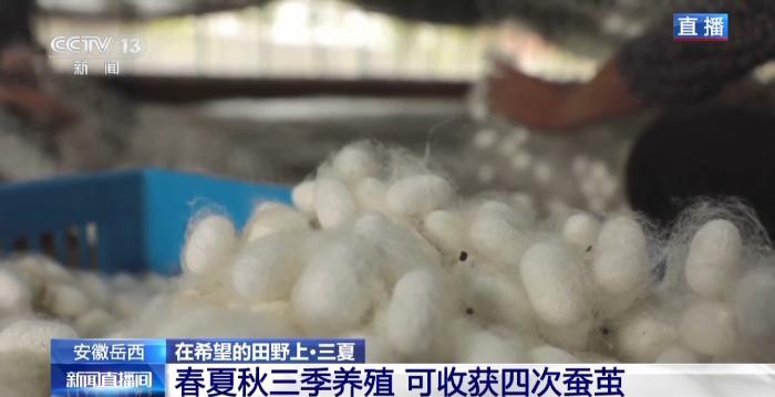 當(dāng)前這些即將結(jié)繭的熟蠶,其實(shí)是今年飼養(yǎng)的第二批了,在岳西縣目前形成了一年中,春、夏、秋三季養(yǎng)殖,分四批收獲的養(yǎng)殖模式。