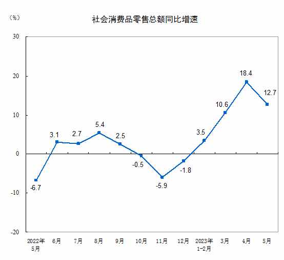 國家統(tǒng)計局:2023年5月份社會消費(fèi)品零售總額增長12.7%