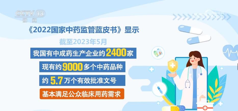 《2022國(guó)家中藥監(jiān)管藍(lán)皮書(shū)》顯示,截至2023年5月,我國(guó)有中成藥生產(chǎn)企業(yè)約2400家,現(xiàn)有約9000多個(gè)中藥品種,約5.7萬(wàn)個(gè)有效批準(zhǔn)文號(hào),基本滿足公眾臨床用藥需求。