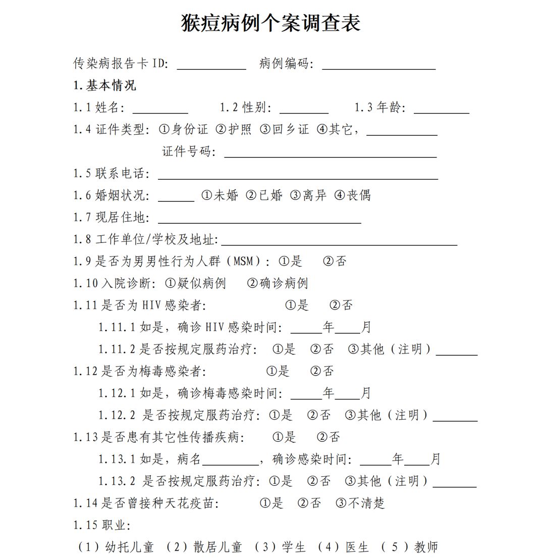 為指導各地疾控機構規(guī)范開展猴痘疑似病例、確診病例和聚集性疫情的流行病學調查,及時掌握病例暴露史、接觸史等流行病學相關信息,落實密切接觸者的追蹤判定,防止疫情傳播擴散,制定本指南。一、調查目的