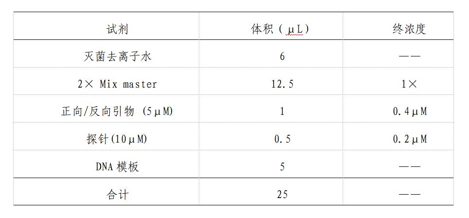 ?、诩訕樱?每根反應管中加入核酸或對照各5uL,蓋緊管蓋或封好透明膜,置于熒光定量PCR檢測儀上。