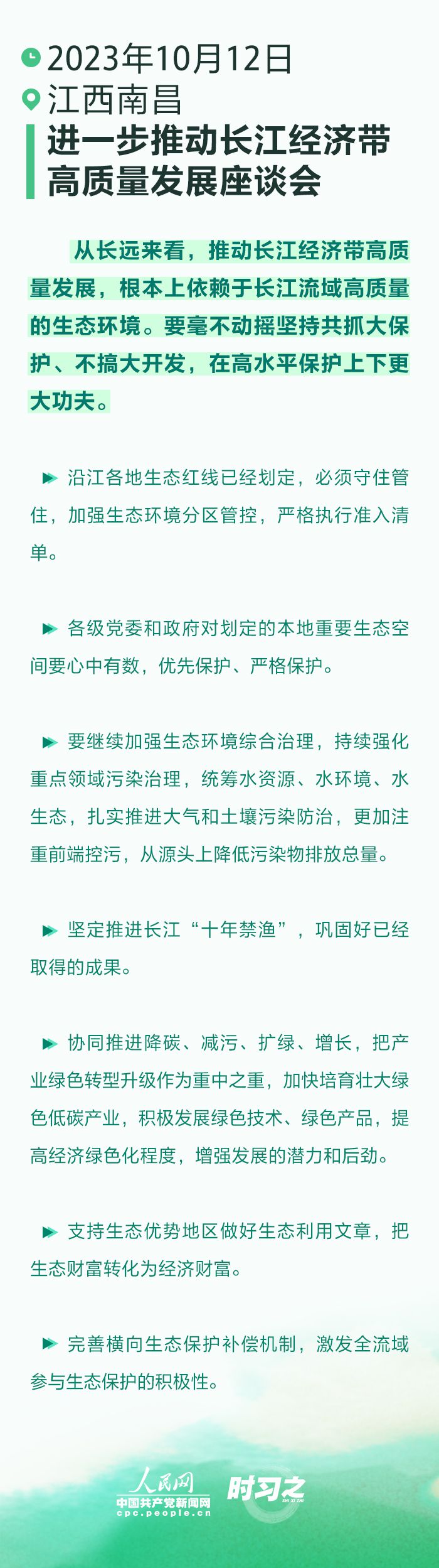 10月12日下午,習(xí)近平總書(shū)記在江西省南昌市主持召開(kāi)進(jìn)一步推動(dòng)長(zhǎng)江經(jīng)濟(jì)帶高質(zhì)量發(fā)展座談會(huì)并發(fā)表重要講話(huà)。座談會(huì)上,總書(shū)記指出,從長(zhǎng)遠(yuǎn)來(lái)看,推動(dòng)長(zhǎng)江經(jīng)濟(jì)帶高質(zhì)量發(fā)展,根本上依賴(lài)于長(zhǎng)江流域高質(zhì)量的生態(tài)環(huán)境。