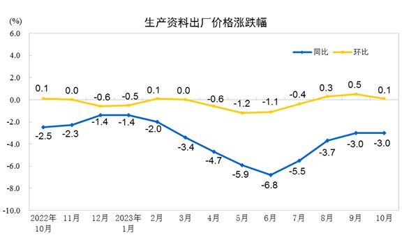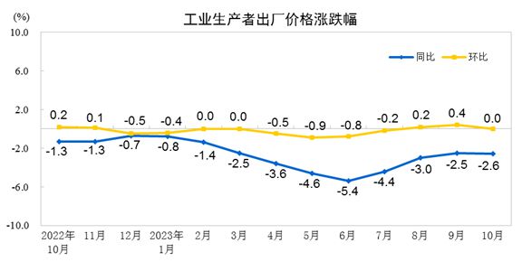 10月份工業(yè)生產者出廠價格同比下降2.6% 環(huán)比持平